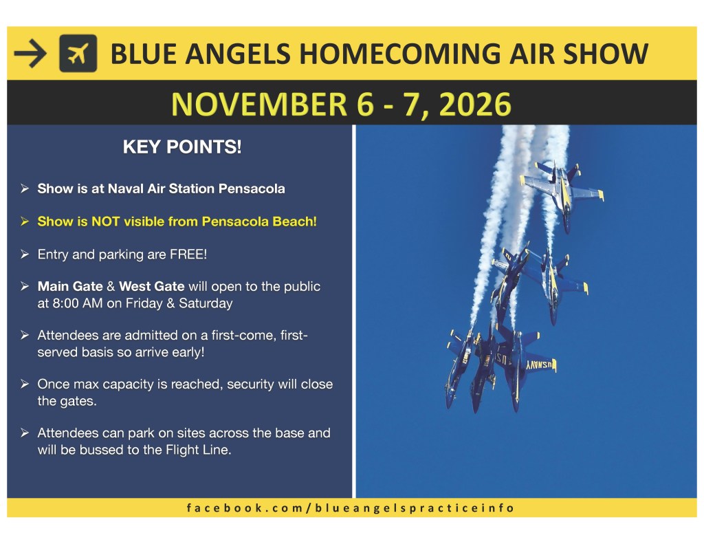 Viewing the practice from the balcony of the Pensacola Lighthouse, 130 feet off the ground, is an experience that you won’t soon forget! Be aware that these tickets sell out very fast! Visit their website for more information.