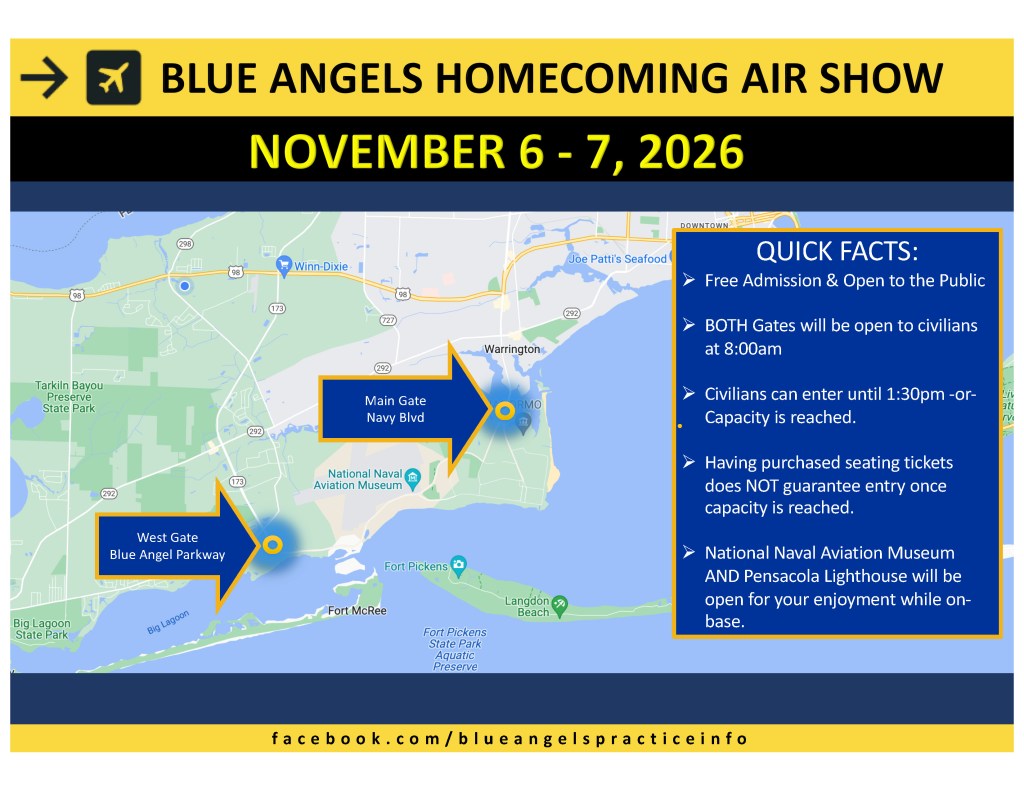 Want a low-key place to watch without navigating the crowds that are often found at the National Naval Aviation Museum? Target is a great location! The store is located at 2950 S. Blue Angel Parkway, Pensacola, Florida 32506. You can easily arrive to the location 15-30 minutes prior to the demonstration beginning. While in the parking lot, make sure that you don’t impede the flow of traffic.