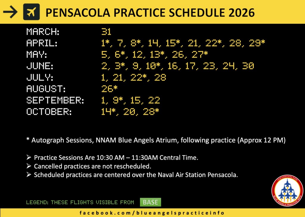 Here are the scheduled practices for 2026. Be sure to tune into our facebook page each day for real time updates.